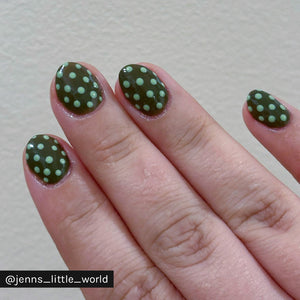 Customers say this green polish is beautifully muted yet vibrant. Many note it applies smoothly and needs two coats for perfect coverage. The shade appears slightly different from photos, with some finding it more vibrant on their nails. Frequent comments highlight its versatility for nail art and French manicures.